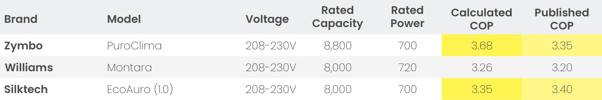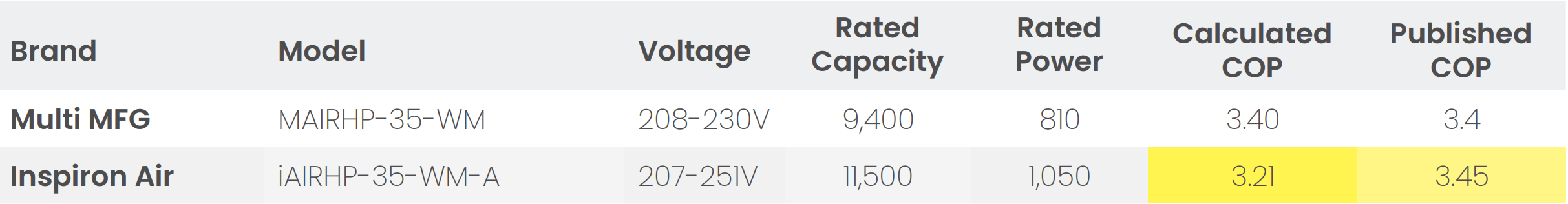 Calculated COP Compared to Published COP